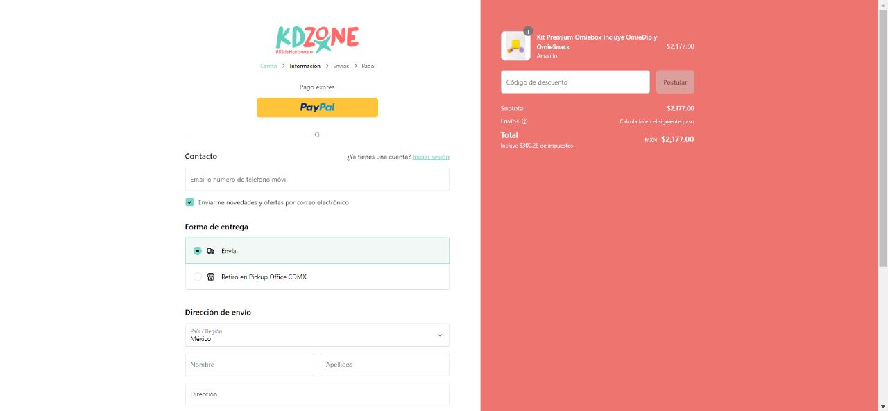 Agrega tus datos de envío, indica tu teléfono celular por si necesitamos contactarte.
