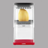 La caja de corte es multifunciona e incluye 3 láminas de corte intercambiables: rejilla de 0.6 cm2, 0.9 cm2 y cortador en cuña con corte de 6 piezas (ideal para gajos de papa).