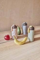 Esta botella de agua fría puede contener 360 ml de líquido frío o caliente. Viene con tapa normal. Las botellas de agua Yummy están fabricadas en aluminio. Tiene función térmica y mantiene los líquidos calientes hasta 6 horas y fríos hasta 12 horas. La tapa queda completamente hermética gracias a la silicona de la tapa, que tampoco contiene BPS.